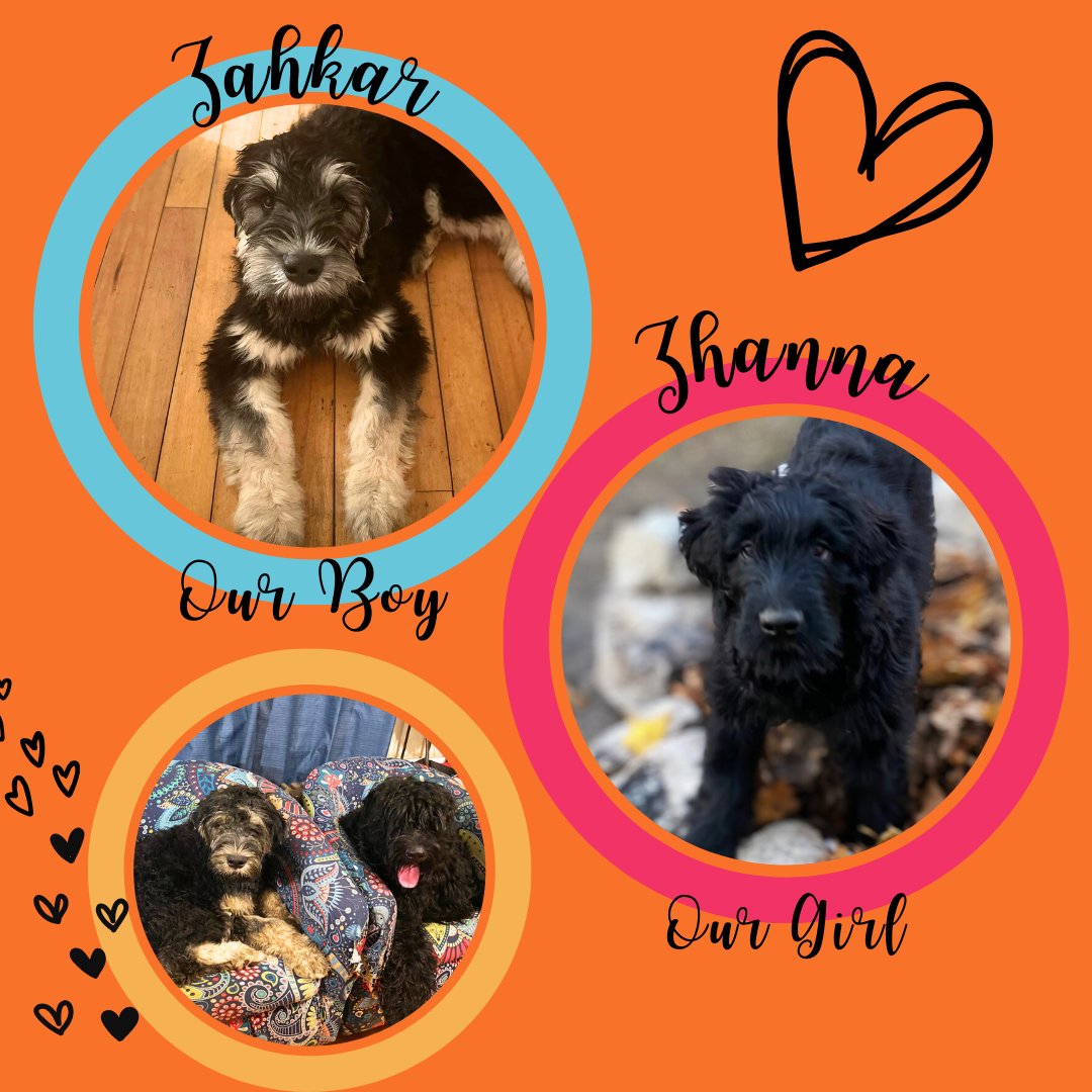 Our first girl Zhanna is an A.K.C. (American Kennel Club) registered purebred (currently showing) Black Russian Terrier. With international champion grandparents on both sides.